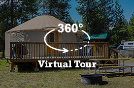 These yurts sleep 6 and include two bunk bed futon couchs (top sleeps one - bottom sleeps two). Each rental has a TV with Dish Network, heating, swamp cooler & ceiling fan. Kitchens include pots, pans, dishes, utensils, coffee maker, toaster, microwave, stove top, refrigerator, dish soap, & paper products. Please note these rentals do not have ovens. Outside is a charcoal BBQ grill. Linens are NOT included; however, pillows are.